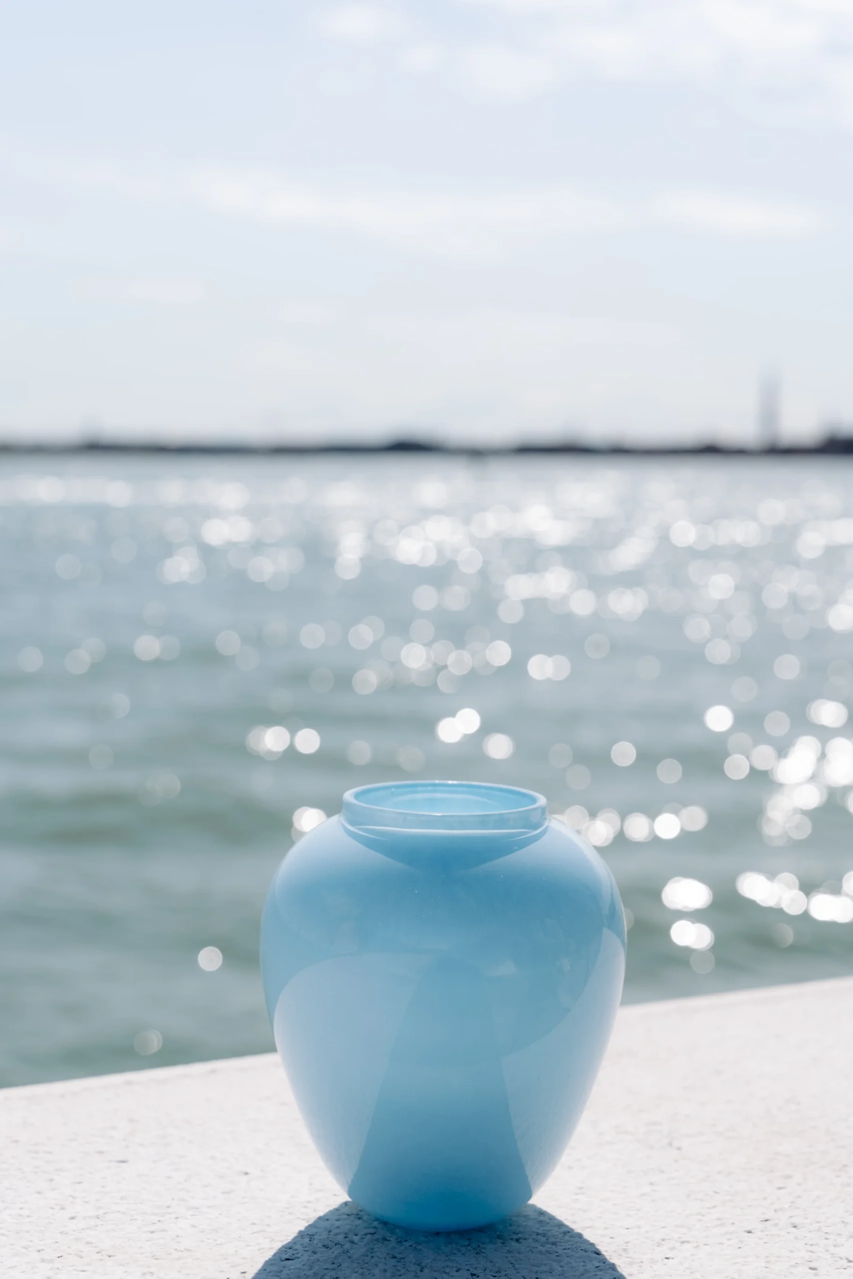 Il corpo principale, OCEANO, evoca la profondità e stabilità dell’oceano stesso. Nella colorazione Sorairo, una sfumatura delicata di azzurro, presenta una lavorazione classica con vetro soffiato. Il colore a polvere rende ogni pezzo unico, creando tonalità variabili e inimitabili.